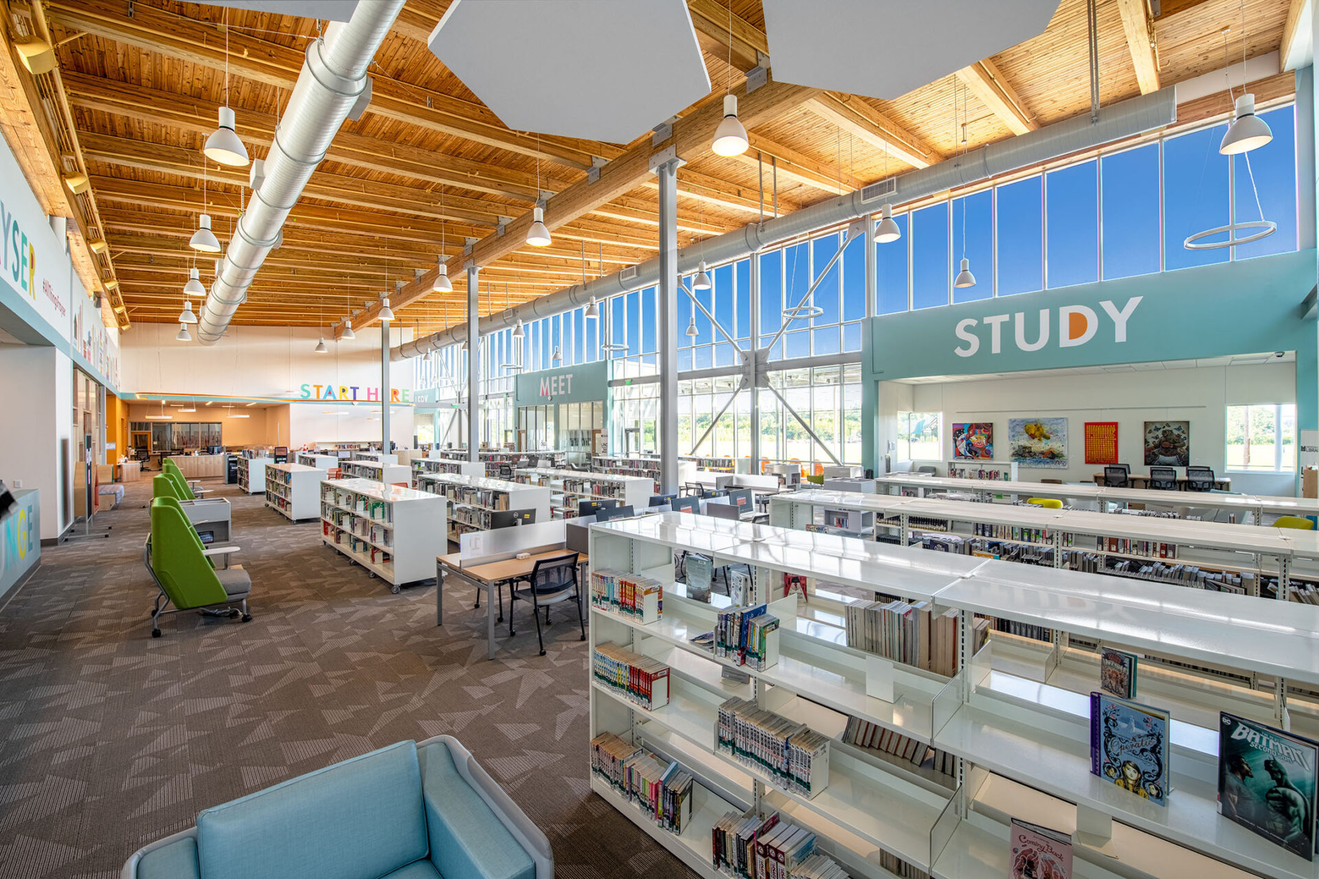 The 20,200-square-foot library replaces a much smaller neighborhood branch and was designed from the ground up to support the City’s climate goals, community needs, and long-term operational savings while creating a vibrant community hub.