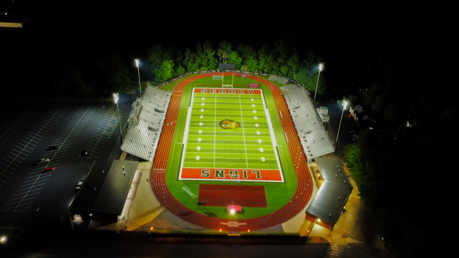 - Football Stadium: 94 LED fixtures with full wireless controls, dimming, and color capability